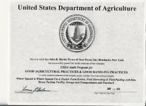 John Martin began farming on his own in 1919 in the town of Greece, New York, about 5 miles west of Rochester. There he grew fruits and vegetables and ran a dairy operation. In 1928 he moved to a 100-acre farm in Hilton, NY In 1939 he acquired a farm in nearby Brockport, where the business was expanded to its present size. John’s grandsons; David, James, Stephen, and Peter and son-in-law Mitch Beyler, now operate the business.